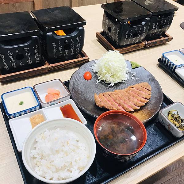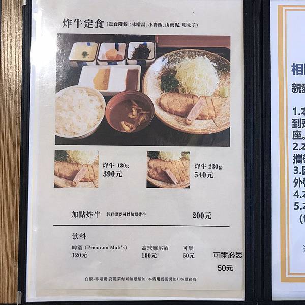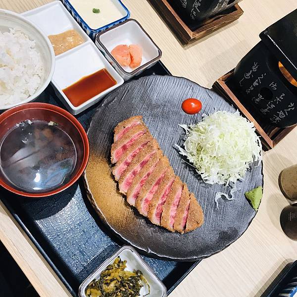 炸牛定食 附餐有 味增湯 小麥飯 山藥泥 明太子