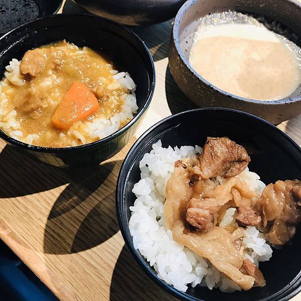 這時候店員才問我們飯是要咖哩飯還是要壽喜燒飯