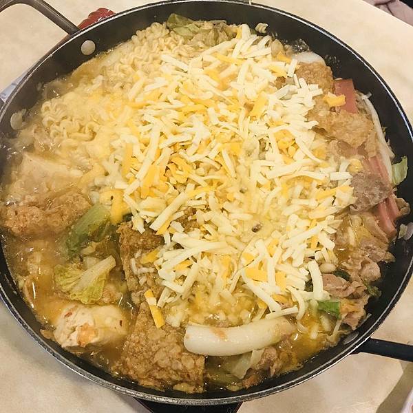有菜、豬肉、培根、火腿、年糕、韓式泡麵、起司、豆皮..等等