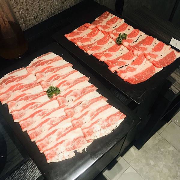 我們點了美國雪花牛肉、牛三拼盛宴、鮮切豬五花、美國牛培根